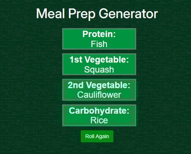Don't know what to eat? Use my Meal Prep Generator to decide a complete meal for you!